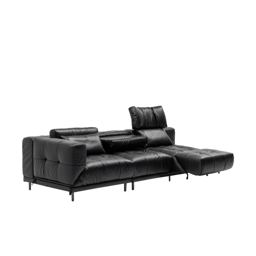 沉浸於無邊際的舒適,極境沙發以獨特的流線輪廓,演繹現代家居的極致藝術。厚實飽滿的坐墊,搭配全牛皮柔軟包覆的靠背與扶手,帶來如雲朵般的支撐感,無論是小憩片刻,或是與摯愛共享悠然時光,皆能深刻感受其極致舒適。